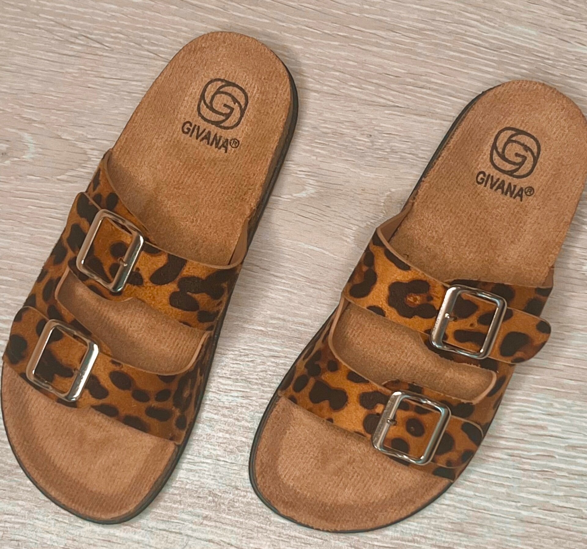 Deze trendy slippers zijn een must-have voor deze zomer. De stijlvolle luipaardprint is helemaal in en voegt een speelse touch toe aan elke outfit. Ze bevatten een dubbele verstelbare gesp, waarmee je de pasvorm naar wens kunt aanpassen. Ze zijn perfect te combineren met zowel casual jeans als zomerse jurken, waardoor je altijd modieus voor de dag komt.
