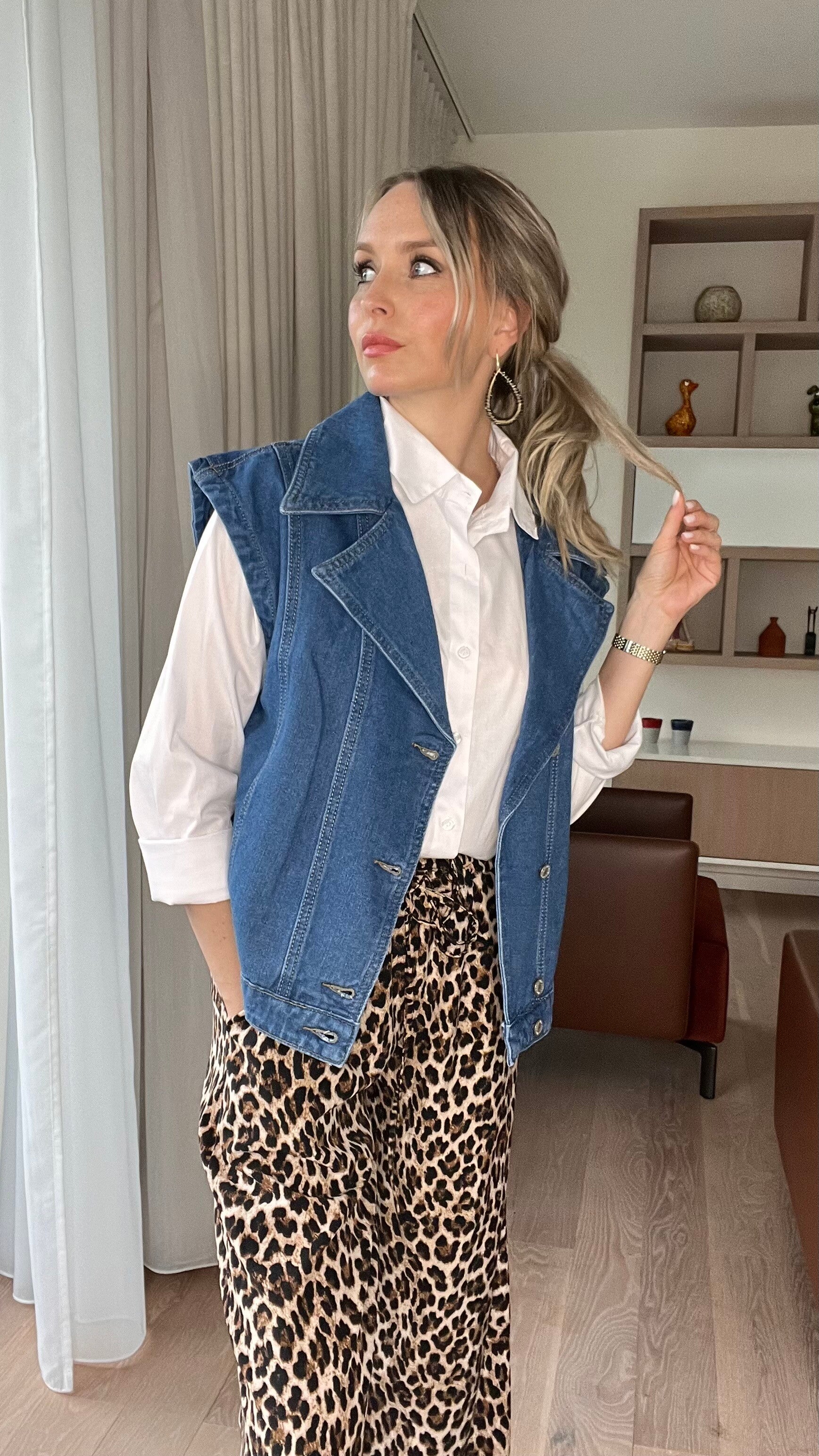 Maak kennis met de Patty denim jacket: een veelzijdig, mouwloos jeansjasje met een stijlvolle reverskraag. De vest is uitgevoerd een prachtige kwaliteit denim in de perfecte blauwe tint!