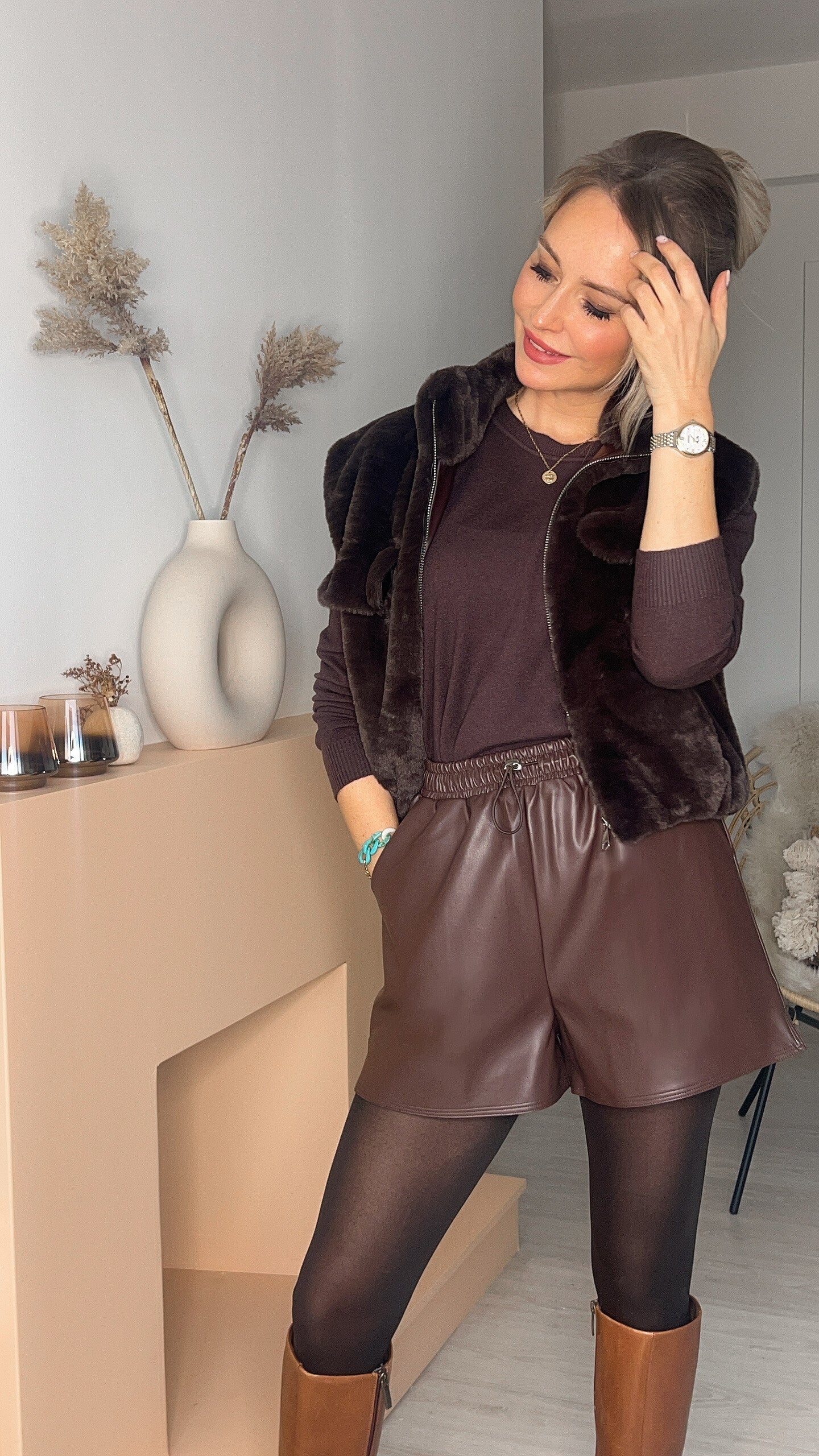 Dit heerlijk zachte gilet met ritssluiting is een perfecte toevoeging aan je outfit voor de koudere dagen. Het voelt supercomfortabel aan en heeft een stijlvolle uitstraling. Geschikt voor maten tot en met een kleine L. Ideaal om te dragen over een trui of blouse voor een extra warme en fashionable look!