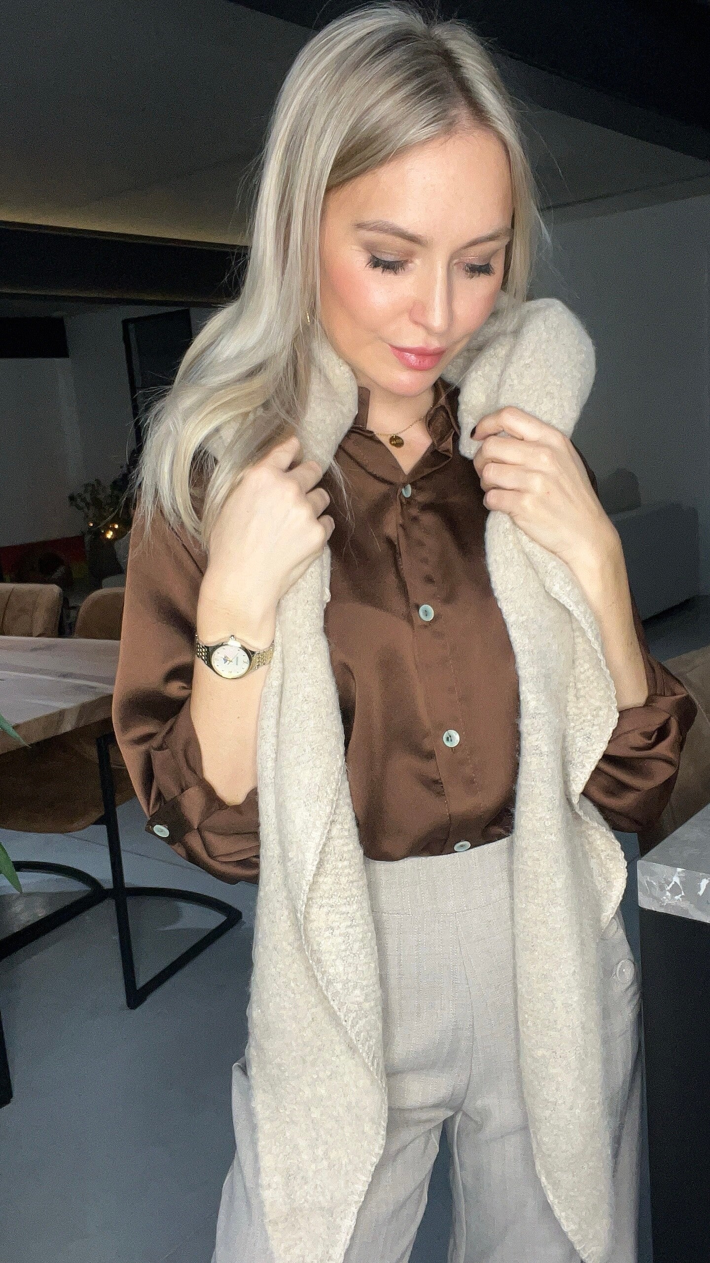 Deze warme sjaal gemaakt uit een superzachte stof houdt je de hele herfst en winter comfortabel. De grijze kleur is makkelijk te combineren met elke outfit. Perfect om je lekker in te wikkelen op koude dagen!