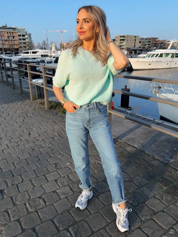 Dit prachtige knit truitje is een absolute must-have! Zacht, licht en comfortabel, zonder te prikken – perfect voor elke dag. De mooie mint kleur geeft een frisse en zomerse uitstraling, terwijl de korte mouwen en de losse pasvorm zorgen voor een effortless chique look.
