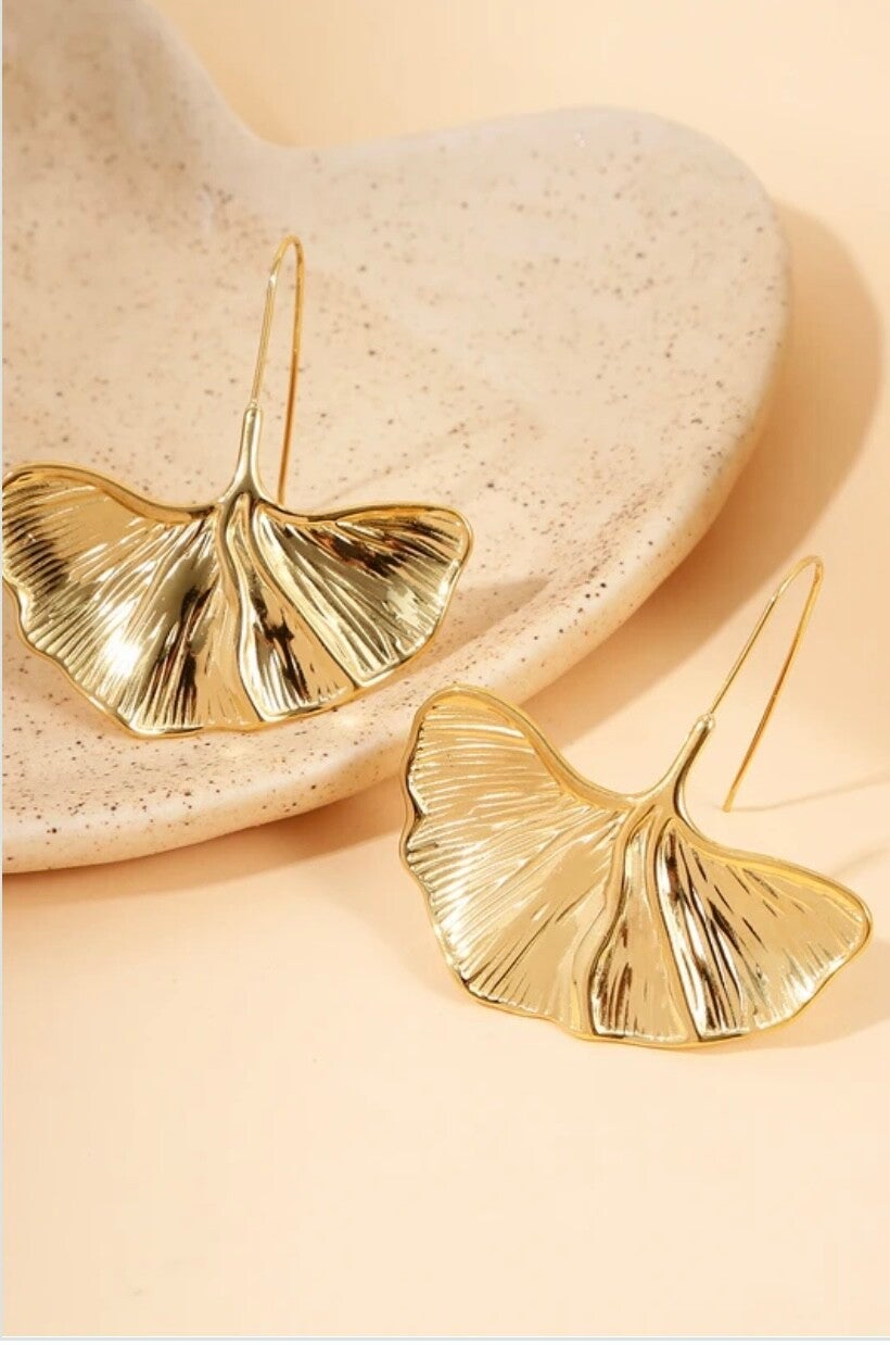 Onze Solène oorbellen zijn een elegante eyecatcher geïnspireerd op de vorm van het ginkgo blad – een symbool van schoonheid en kracht. Deze gouden oorbellen combineren een organisch design met een luxueuze glans, perfect voor wie houdt van statement oorbellen met een natuurlijke touch.